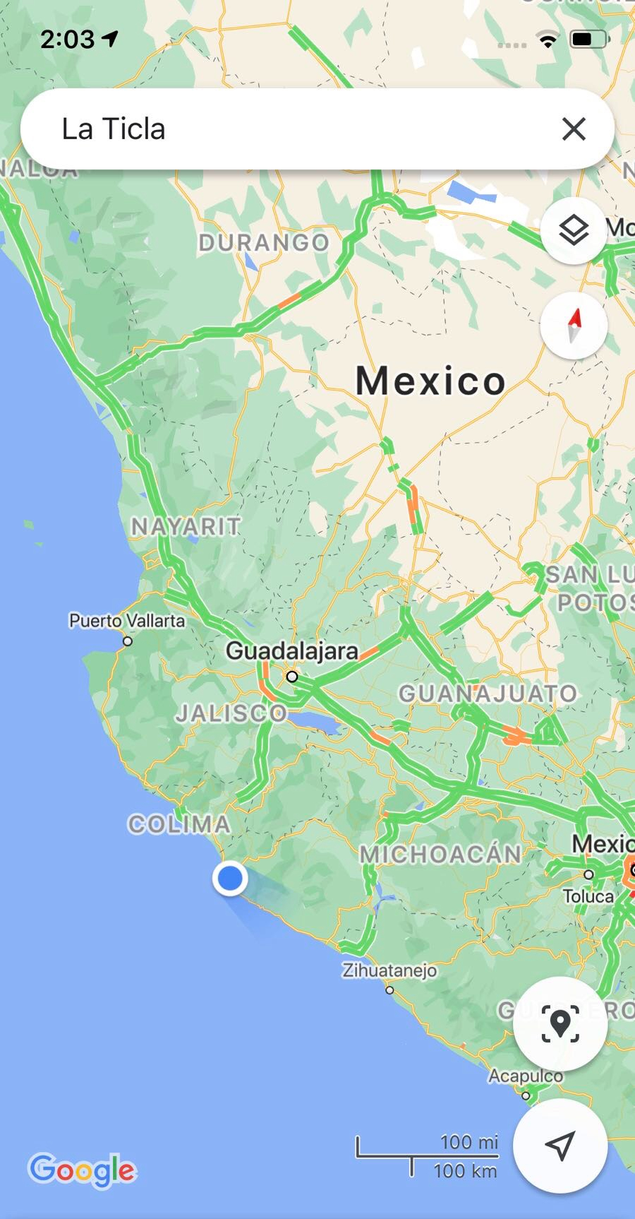 We spent an entire day reaching La Ticla. The roads were slow and winding in many places and in other we crawled through the large cities of Tacoma and Manzanillo. We also stopped off for a detour to a cash point and at a beach that was supposed to have crazy big waves. Not for us you understand, just to watch. Yet again, the sea was pretty flat, so we got back in the cars and continued south.