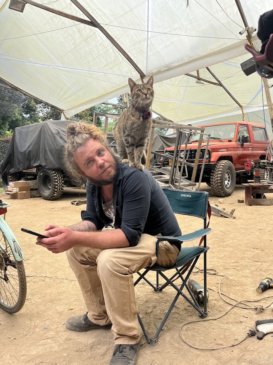The mechanic (whose name I can barely say, let alone type. Egelbert??) was happy for us to camp out in the garage and so we refitted out rear wheel enough to very slowly manoeuvre out of the driveway and further down to the end of the track where their workshop was.