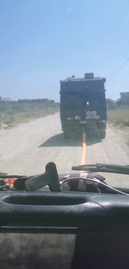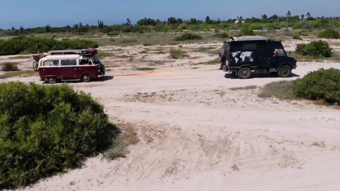 The final section is a bumpy dirt track to the coast. It’s nearly impossible to keep the tow rope tight as we hit pot holes and speed bumps at different times, but so far I had succeeded in not driving into the back of Bruno. Good for us, I think we would have lost that fight. We got to the chosen spot late afternoon, Bruno towed us into position and the park up near. Jaro came over and camped with us too. We had a celebratory beer that we had made it. I’m grateful to Hanno for being willing to give it a go, even though it was not a pleasant experience and next time if if don’t need to fill my water tanks I’ll probably pay £30 not to do that. Here we were though. Our home for the forseeable future.
