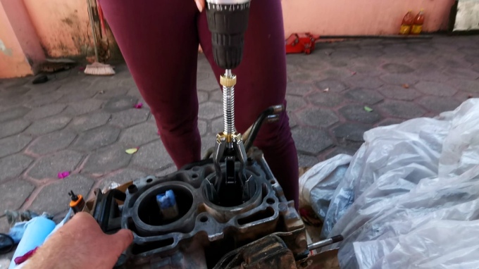 With the late arrival of our engine parts, any hope of having the engine rebuilt by the end of the day was not going to happen. But, we at least made a start. That morning we had been to the shop and got all of the tools we needed which we didn’t have, we didn’t want to have any more delays trying to borrow equipment. The first thing was to refit the pistons, after honing the block with our newly purchased tool.