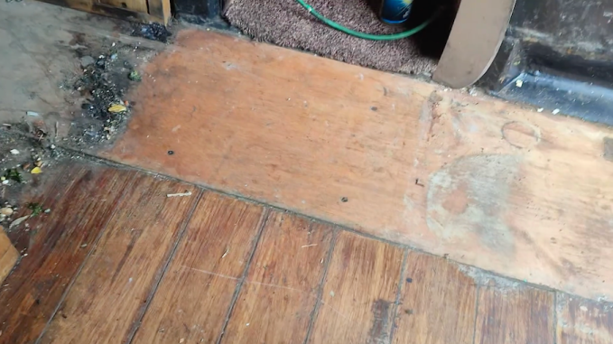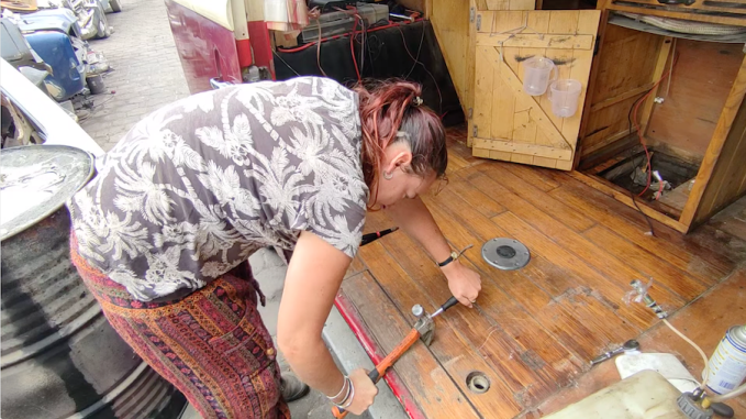 Then, it became a difficult task as I had feared it would. Despite the fact that we had built our kitchen unit as a whole piece, meaning that it would come out as one unit and was held down by less than ten screws, those screws had since long rusted into nothing. It was impossible to remove them as the heads stripped as soon as you tried. This meant we had to resort to removing the flooring first, in the hope of pulling out the units with the few floorboards they were screwed into, still attached. As the flooring is tongue and groove, this too was a bit of a battle. Our kitchen is built to fit the camper, and it does it so very precisely. There is not much in the way of wiggle room here and consequently, it took us nearly a whole day to get out the kitchen. As always… a quick job took way longer than it needed to, just because of some rusted metal