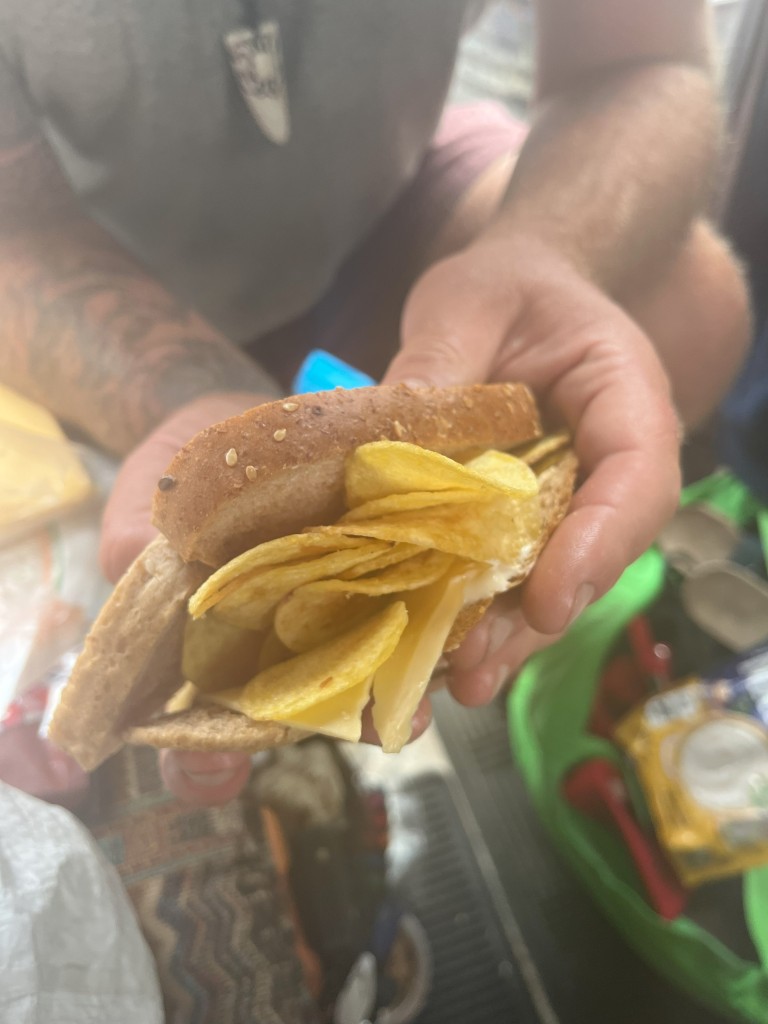 In the morning, Mauricio did indeed offer us the room. He told us we could use the fridge and cooker, and showed us the hot shower. Then he got some of his staff to begin clearing the room for us. In turn, we started to clear out the van. As the rust repairs would need us to remove the kitchen, and the gearbox repairs meant we would need to remove that too, this basically meant moving everything out. For the first time since we had built it, the interior would be coming out. I was actually quite excited to start. Once and for all, this would be the end of the cockroaches. Not only that, but we could finally replace our butchered floor from our first garage visit in Colombia. Ruby would be a new van by the end of this. In the midst of the unpacking frenzy, we stopped for a quick crisp sandwich, before continuing emptying the contents of our rock and roll bed.
