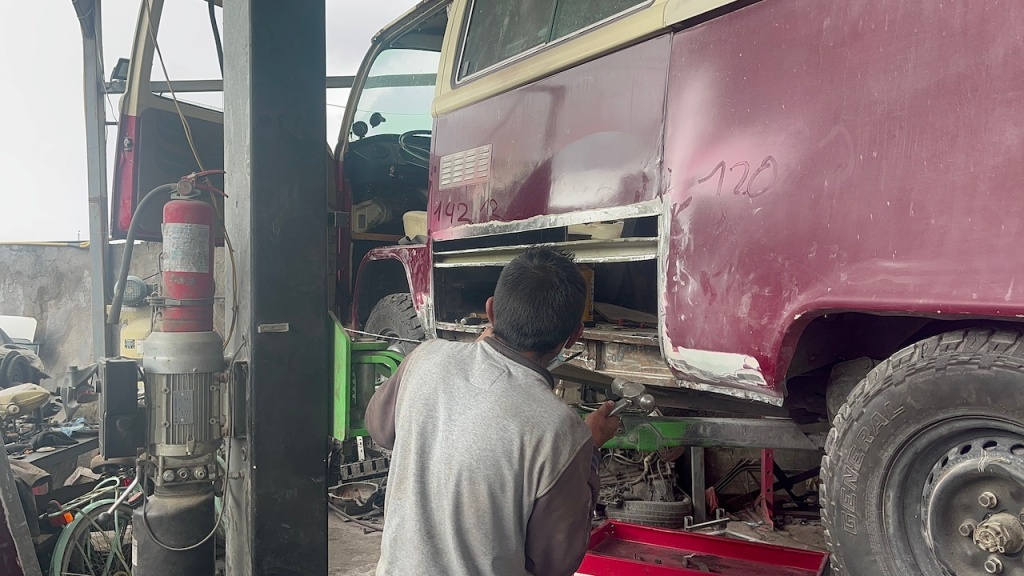 While we spent the day getting to the capital and back, the body work guys started chopping bits out of Ruby. Starting with our disaster of a side panel, finally things felt like they were underway.