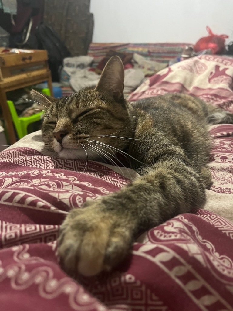 The weekend passed by, with us having Sunday to ourselves, before everyone was back for Monday. We had been sleeping much better in the room; despite being only single glazed and a little bit further from the road, it made an enormous difference. The traffic was audible, but more background noise. Aimee was a bit on the crazy side, bored and stuck in the room by herself, but at least she was safe here. At night we gave her the full run of the apartment, where she tore up and down the corridor before burying herself in the nearest empty box and systematically shredding it.