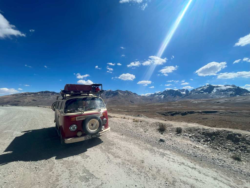 As you can imagine, up here it was cold. Thankfully, even though it was operating several thousand metres above its maximum specifications, our heating still worked and kept us warm throughout the freezing night. In the morning, we saw the mountains bathed in sunlight and the herds of llamas crossing the valley below.