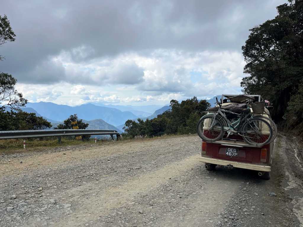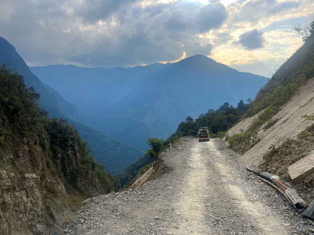 Towards the end of the road, we got to the section which had recently been subjected to a landslide and had only been re-opened recently. It was still clear to see where the hill above had slid into the valley below, taking the road with it. A new, but significantly small track had been carved once again into the bare mud and rock face. It was the only part of the road where I fixed my eyes firmly on the horizon and instructed myself to drive in a steady straight line.