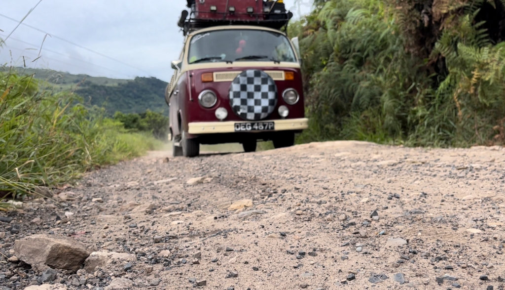Due to our slow progress, it was towards the end of the afternoon when we found tarmac again for the last section of the drive. Large sections of the road had subsided, making this slow as well. It didn’t seem surprising that this area was at risk from landslides, looking at the state of it.