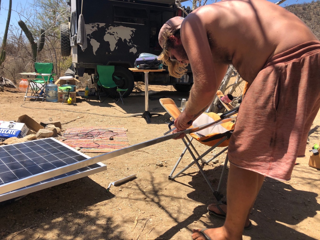This was all great. The last sticking point was the solar panels. There wasn’t much in the way of flexible panels available in Mexico, there not being much of a market for them here. I could get them posted from America but this was pricey. Our friends had bought a new solid panel when their flexible panels had also failed (another common theme among long term travellers), from the local shop. They said the panel actually exceeded its own specifications, basically unheard from flexible panels which consistently seem to under deliver. Undoubtedly, solid panels are better but fitting one to Ruby was another matter. It would have to go on our pop top, adding an extra 30kg of weight. We would have to update out gas struts and buy a new charge controller. This sounds like a lot of extra faff and cost, but solid panels are cheaper. This one was also local so there would be not delivery charges which are high on solar panels. All in all, it meant that for an extra two hundred pounds or so, we could have a 405w system, rather than 225w. We would never run out of power again!!