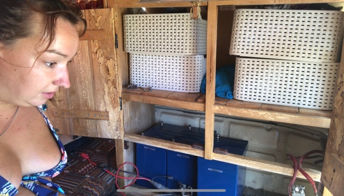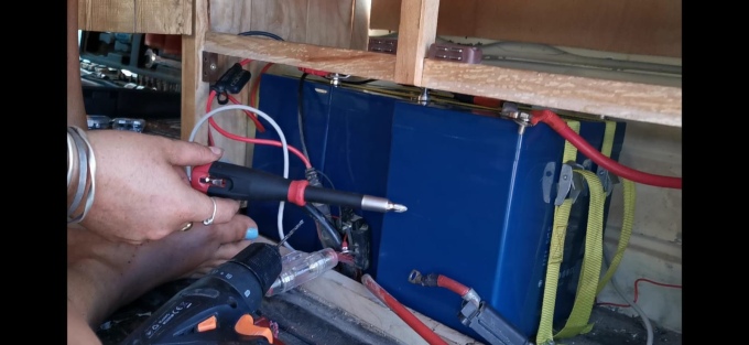 I was very excited to be putting in our new batteries. I imagined a life where I could charge the laptops whenever I wanted. The fridge could be run on max power and the Wallas could be turned on without running the generator or the engine. We could run a fan at night. Charge our electric toothbrushes! The options were endless and thrilling.