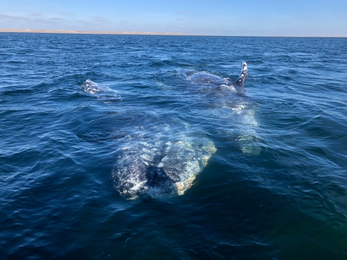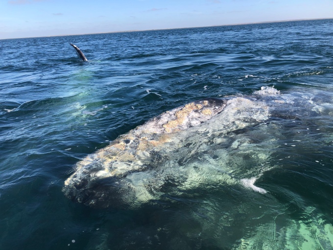 At one point there was 6 whales, all rubbing there barnacles on the bottom of the boat and popping up beside us within arms reach.