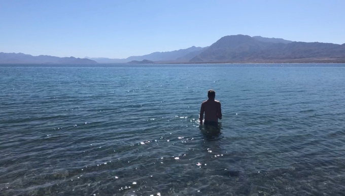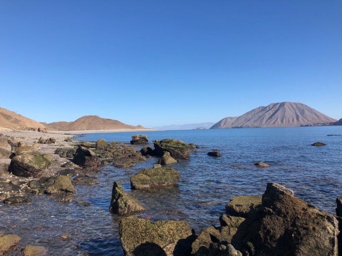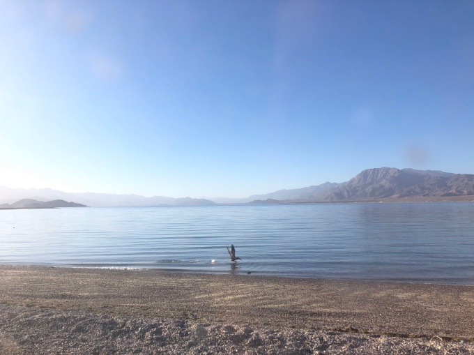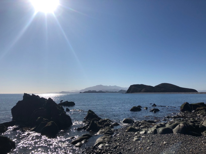 We arrived at Bahia de Los Angeles around mid-afternoon, after a slightly hairy moment when the road abruptly turned into a dirt track without any warning. The camp spot we had chosen was a free one around the end of the bay at a nature reserve called La Gringa.