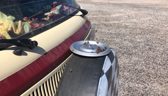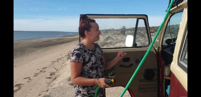 Detour completed, it had saved us try to peddle of a big hill in the hot sun and that’s ok with me. We arrived back at the campsite to enjoy the last of the afternoon sun on the beach. We hadn’t initially planned to stay two nights, but it was a beautiful spot and after such a quiet night I couldn’t say no to another one. We had also made the mistake of giving, the apparently very thirsty, local bees some water. This led to our van being enveloped in bees for much of the day.