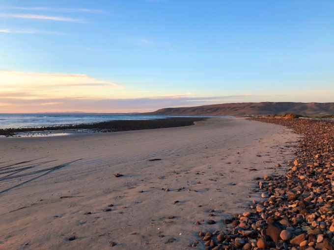 We had arrived with an hour or two of daylight left, and walked down to the beach. I decided Aimee should come, which made our walk short-lived as she still doesn’t really like the beach. Having returned her to the van, we headed back out to wander down the coastline, littered with lobster carcasses and also a dead and slightly liquid seal. I was quite happy to find some rather good shells though. As with many times on this trip, it’s probably a good thing that we live in a very small camper as I would no doubt acquire a lot more tat otherwise.