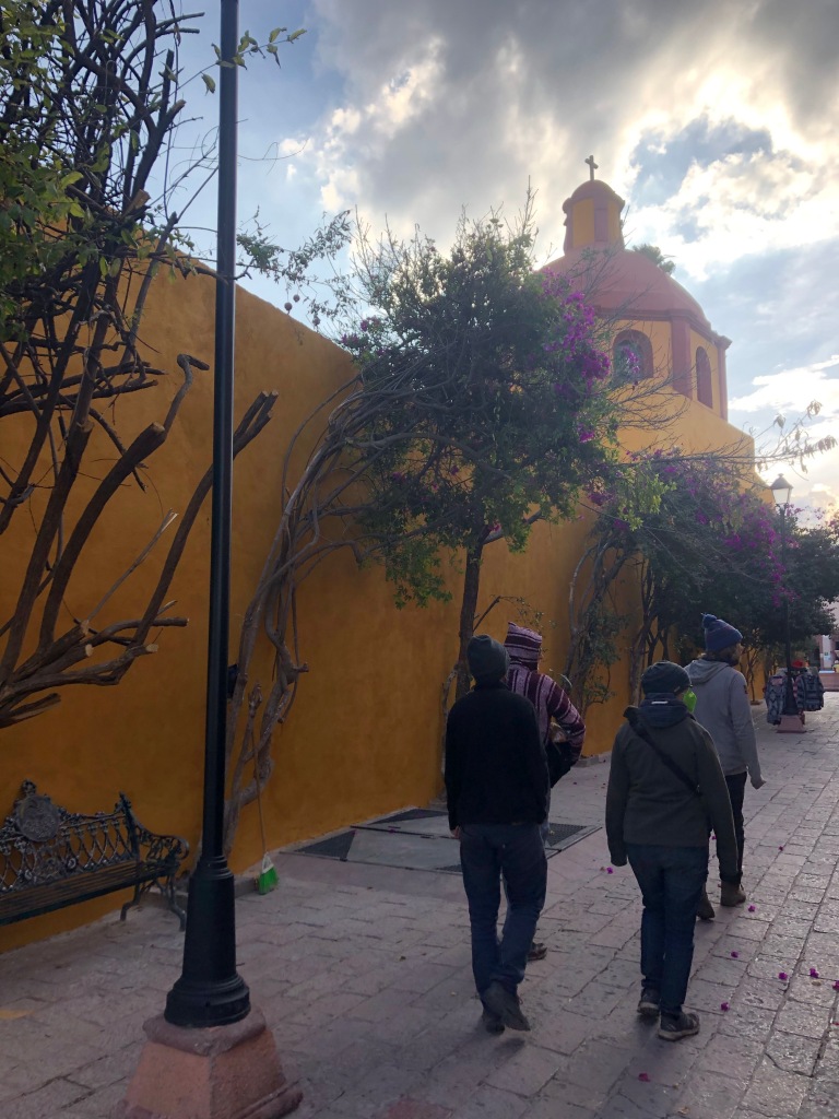 We found the free car park easily and it was at this point that Kikki told us Bernal was famous for its wine and cheese. Aimee had already done a runner, so we left her to explore while we, rather excited, we headed into town. Here, we’re back to Covid downsides. The town was a ghost town, although I’m not sure we can attribute all of this to the pandemic. The town appears to only open at the weekend, surviving soley on tourist trade, it was still pretty to look at however.